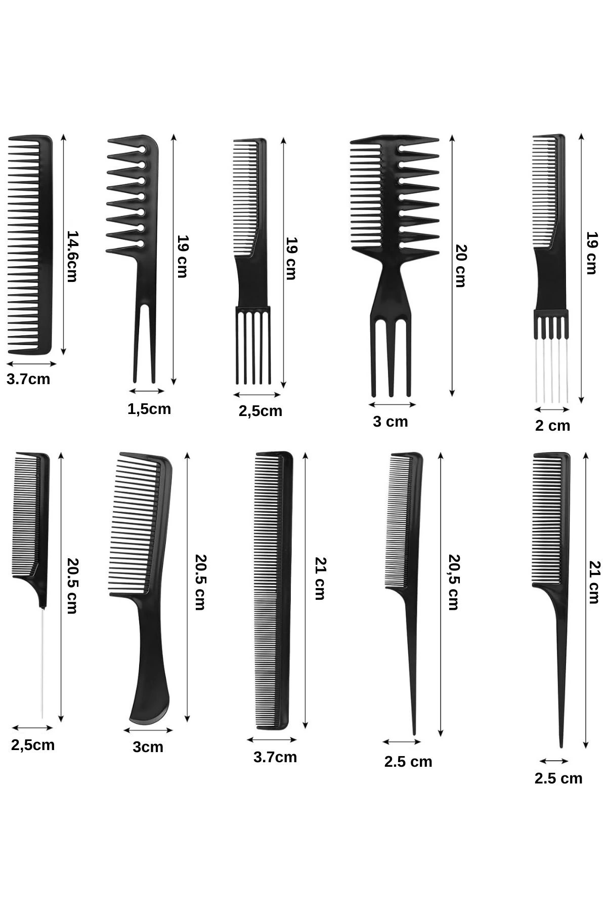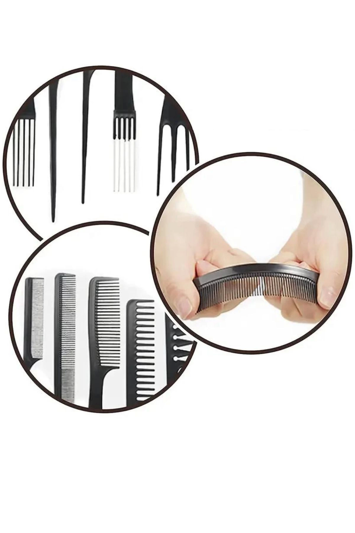 Профессиональный набор парикмахерских расчесок из 10 предметов — идеально подходит для стрижки, сушки феном, разделения на проборы и укладки