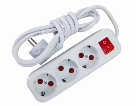 Групповая розетка с заземлением, выключателем и кабелем длиной 3 метра