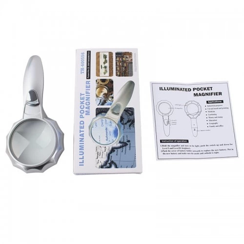 Ручная лупа с оптическим объективом 75 мм и подсветкой 4x6 светодиодов