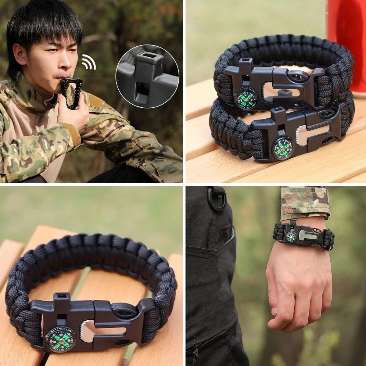 Многофункциональный браслет для выживания 5 в 1 с компасом, свистком, огнивом и тросом для зонтика