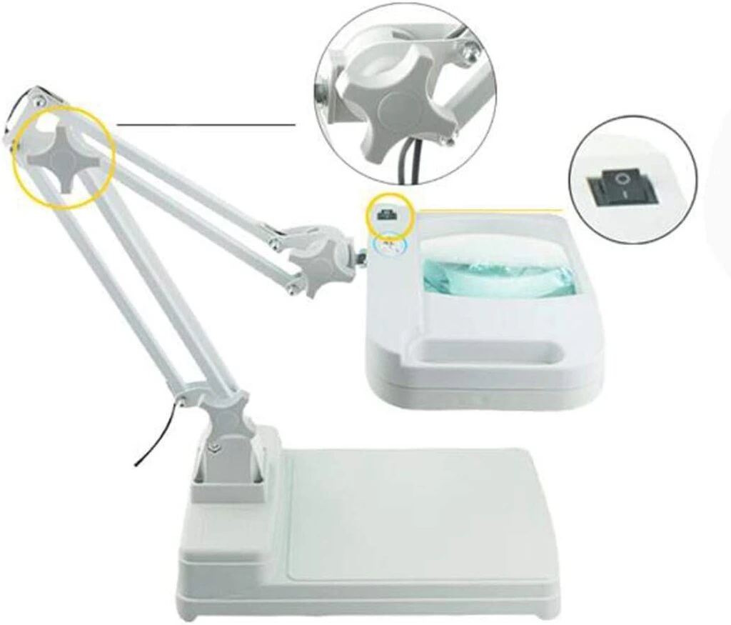 Эта превосходная увеличительная лампа с подставкой идеально подходит для чтения, разгадывания кроссвордов, шитья, вязания крючком, вышивания крестиком, бисероплетения, декоративно-прикладного искусства, ремонта электроники, деревообработки, изготовления ювелирных изделий или коммерческого использования.