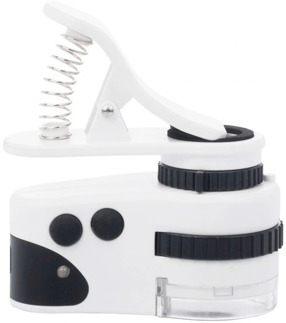 Вы можете легко закрепить его на своем мобильном телефоне с помощью зажима и более подробно рассматривать объекты с помощью 60-кратного микроскопа, изучать их и фиксировать, делая фотографии.
