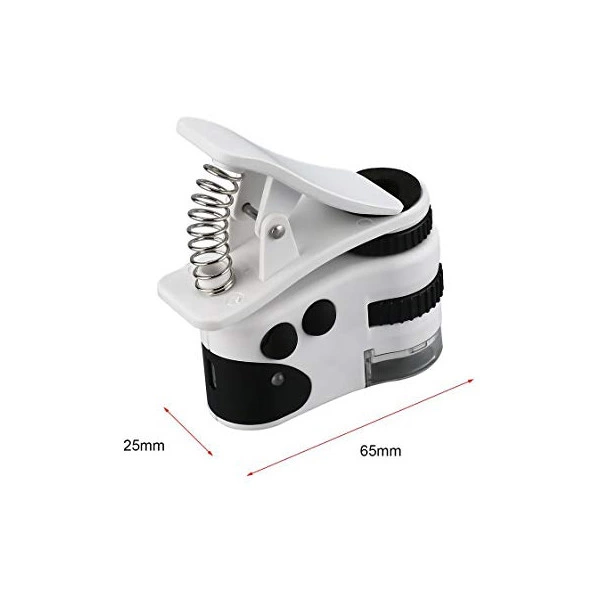Мини-микроскоп 60x с зажимом для мобильного телефона, УФ-светодиодная лупа, модель Al2431