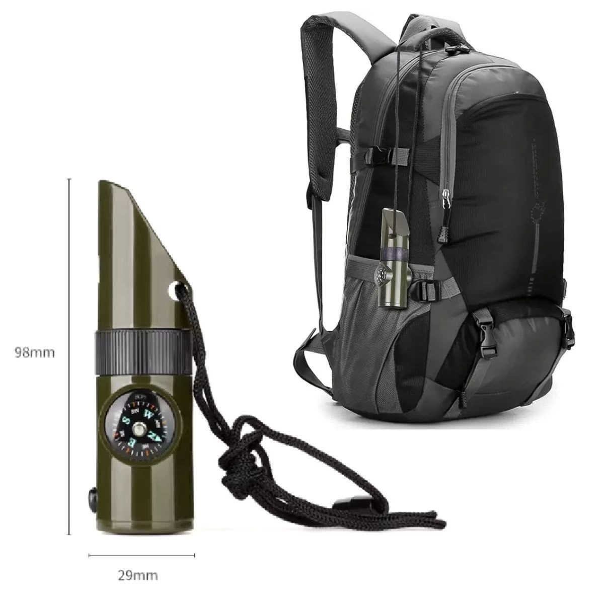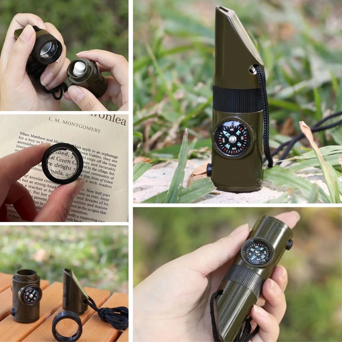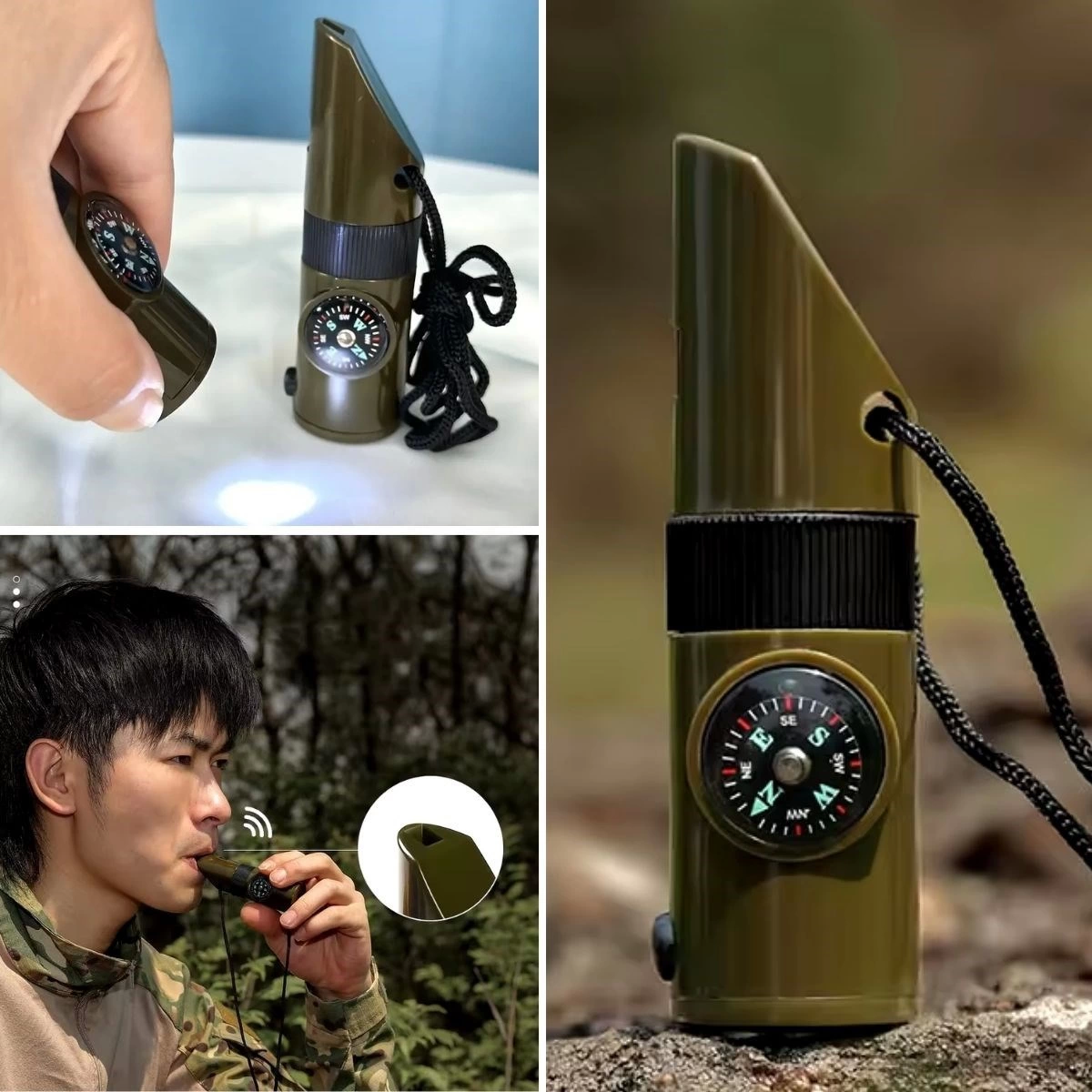 Аварийный свисток 7-в-1: фонарик, термометр, компас, лупа, походный свисток с отделением для хранения