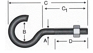 - M4: Диаметр крючка 4 мм. Этот диаметр обеспечивает достаточную прочность для различных монтажных и крепёжных операций и, как правило, подходит для небольших грузов.