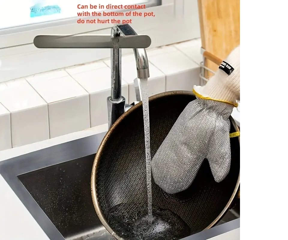 АЛЮМИНИЕВАЯ ФОЛЬГА ДЛЯ МЫТЬЯ ПОСУДЫ Перчатка для мытья посуды из алюминиевой фольги имеет практичный дизайн с четырьмя секциями для пальцев и большого пальца. Этот особый дизайн обеспечивает пользователю максимальный контроль. Предлагаемая в виде одной перчатки, она идеально подходит для эффективной очистки жесткой посуды. Она обеспечивает надежную поддержку для легкой полировки различного кухонного оборудования, такого как темные кастрюли. Она обещает длительное использование благодаря прочному материалу, что делает ее надежным помощником в работе на кухне. Благодаря своей особой конструкции перчатка для мытья посуды из алюминиевой фольги защищает ваши руки от влаги и агрессивных чистящих средств, обеспечивая тем самым комфортное использование. Прочный материал алюминиевой фольги устойчив к горячей воде и защищает ваши руки при мытье тяжелой или жирной посуды. В то же время ее гибкая структура гарантирует, что перчатка идеально облегает ваши руки, обеспечивая надежный захват во время любого процесса мытья посуды. Это идеальный помощник для тех, кто ищет гигиену и эффективную уборку на кухне. Вы можете безопасно переносить такие предметы, как горячие кастрюли, стеклянные банки и подносы. Цена указана за одну перчатку. Комплектация: 1 перчатка для мытья посуды из алюминиевой фольги.