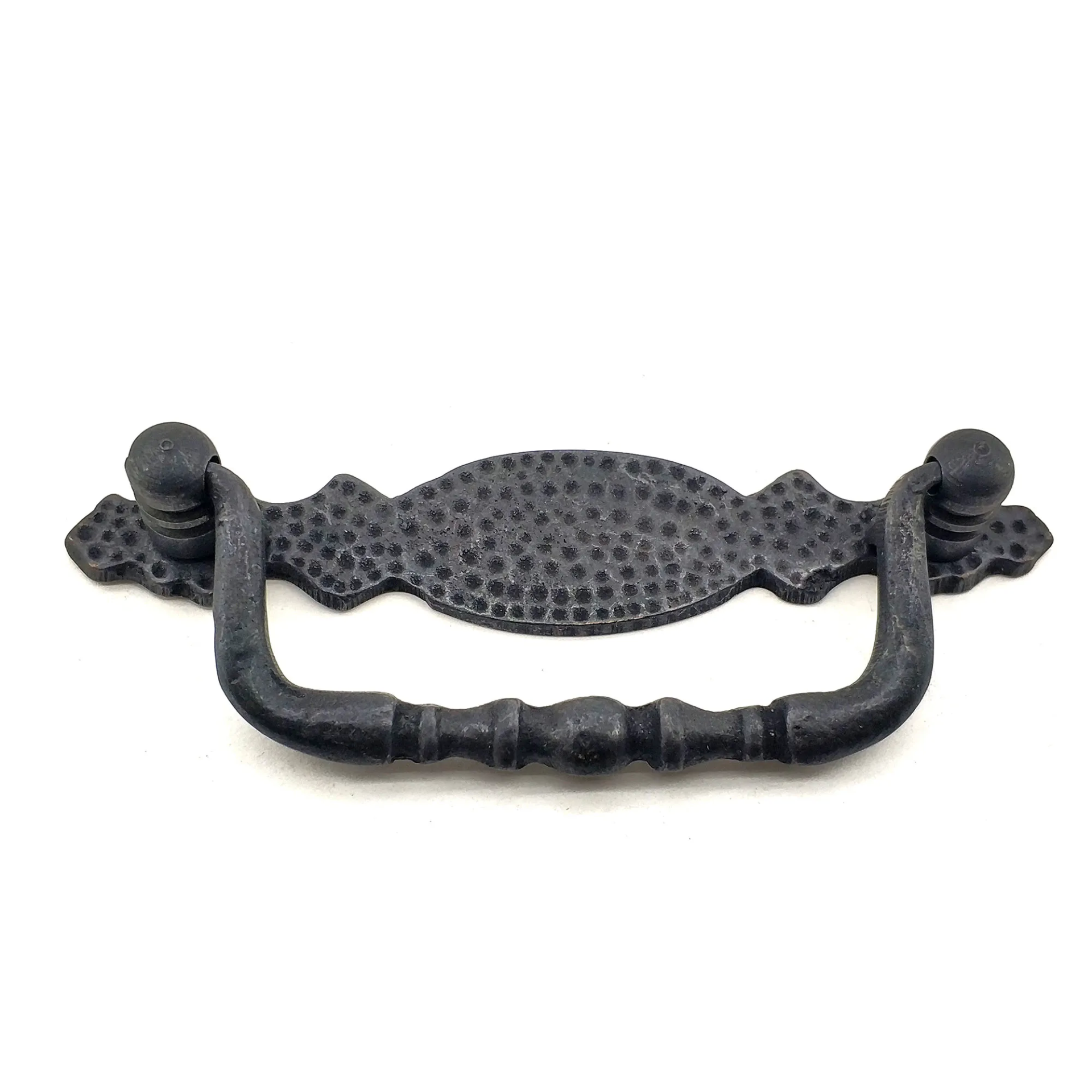 Декоративная кованая ручка для распашной двери в античном стиле из латуни - 43x118 мм, оксид