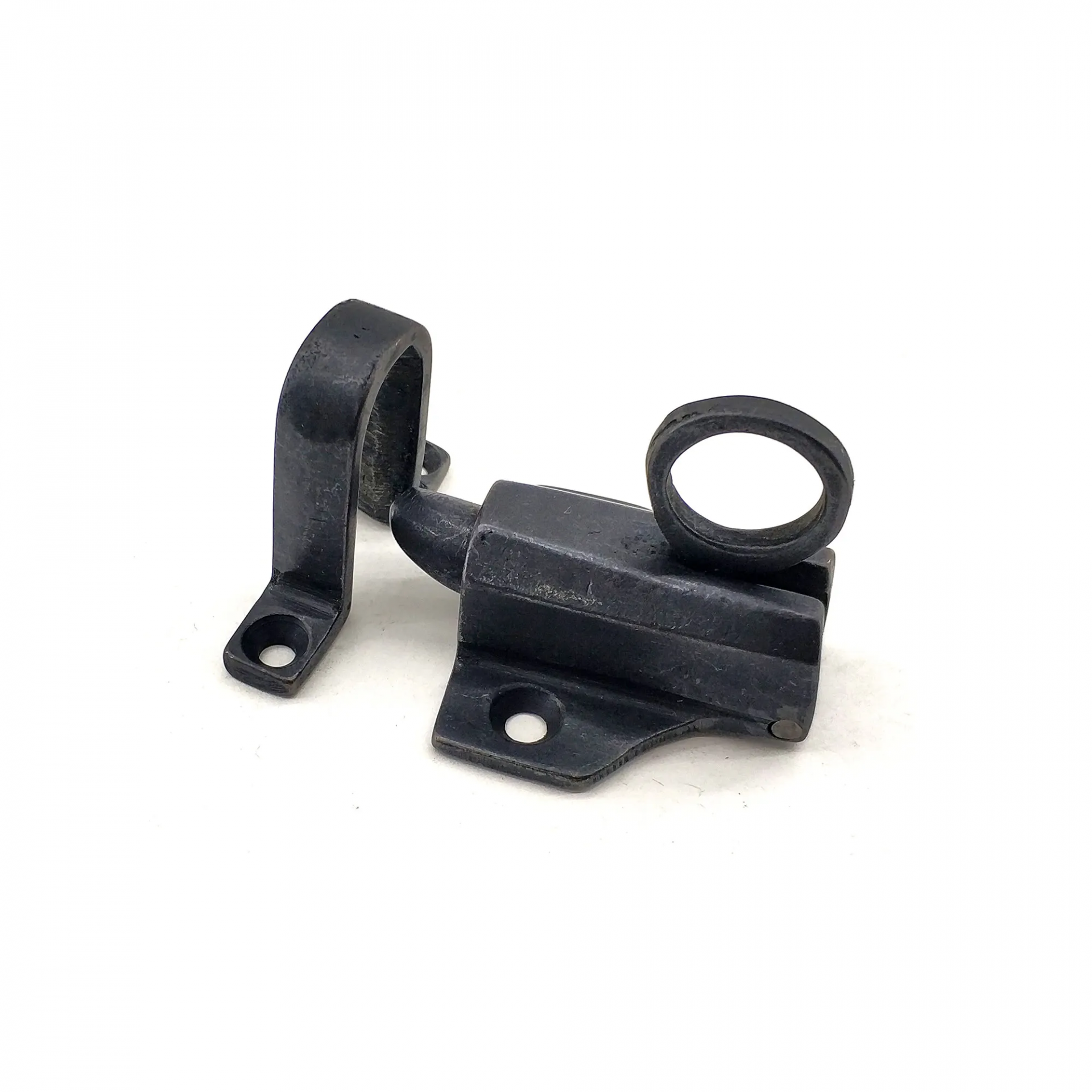 Фиксатор для импоста — это металлическое изделие, позволяющее открывать и закрывать небольшие окна, обычно расположенные в верхней части. Изделие имеет декоративный дизайн, имитирующий старинный, и изготовлено из латуни. Оксидированная поверхность придает изделию матовый, состаренный вид, добавляя классическую и элегантную нотку.