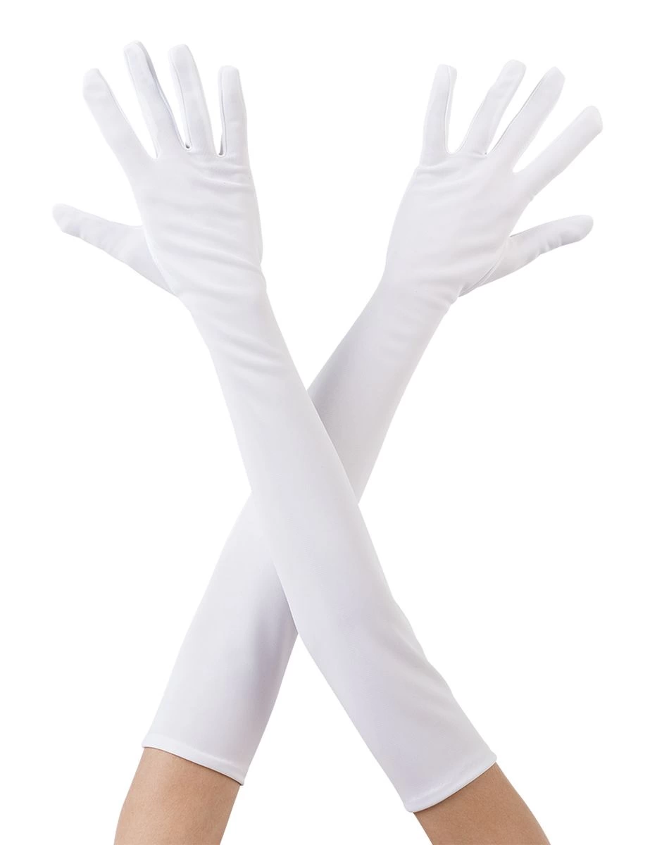 Перчатки белые длинные из ткани длиной до локтя 40 см