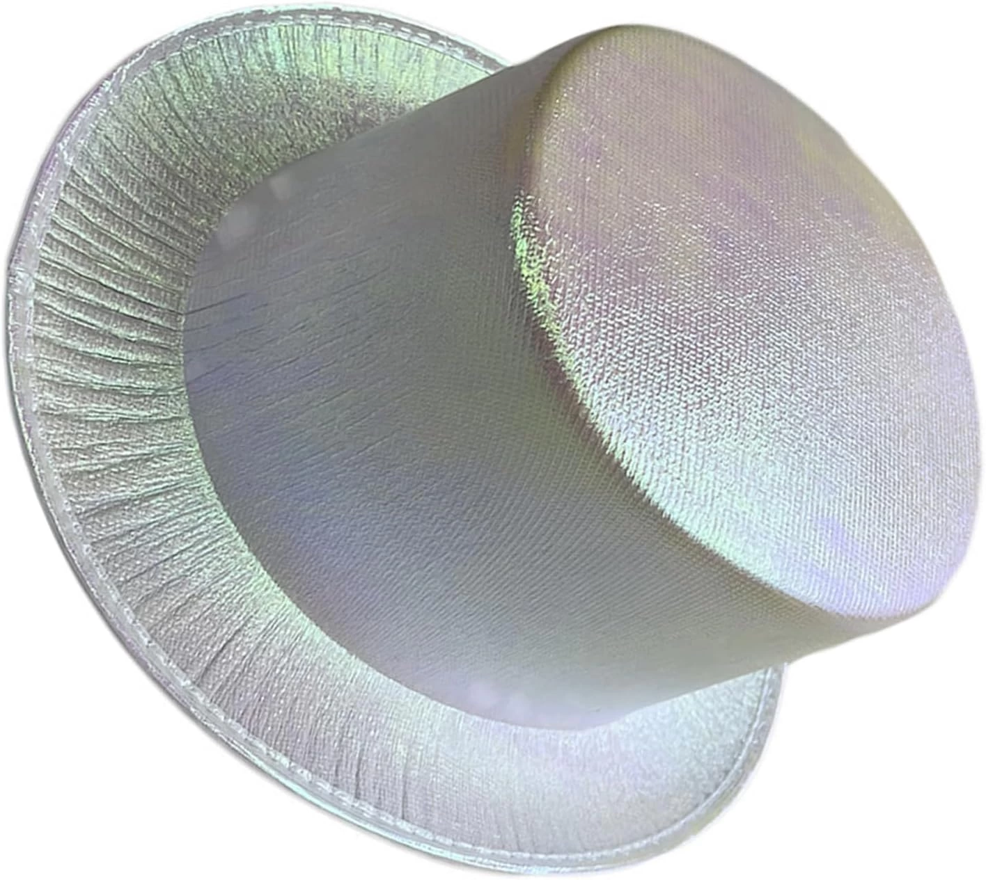 Белый цилиндр из блестящей ткани с голограммой, покрытый фетровой тканью, размер для взрослых