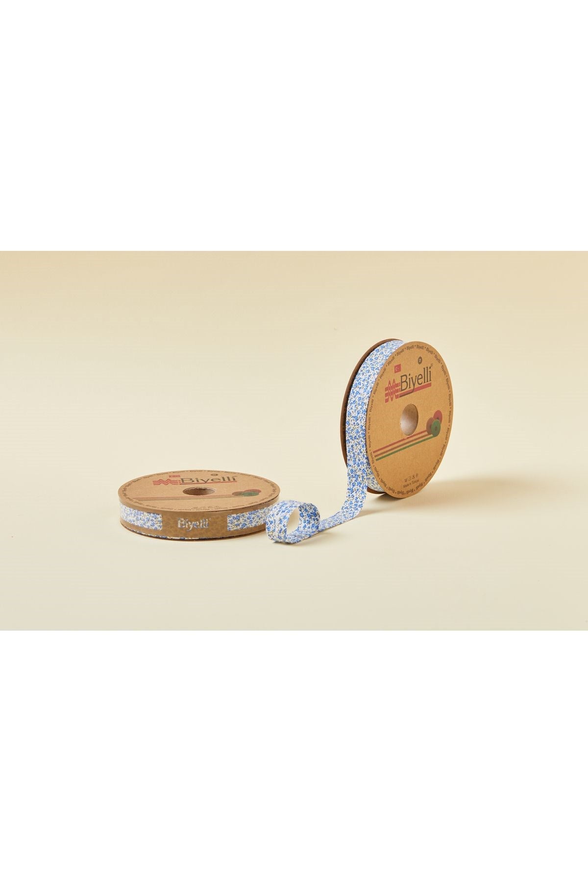 Цветочная гофрированная тесьма A01 синего цвета, 2 см, 25 метров, 65% хлопок, 35% полиэстер