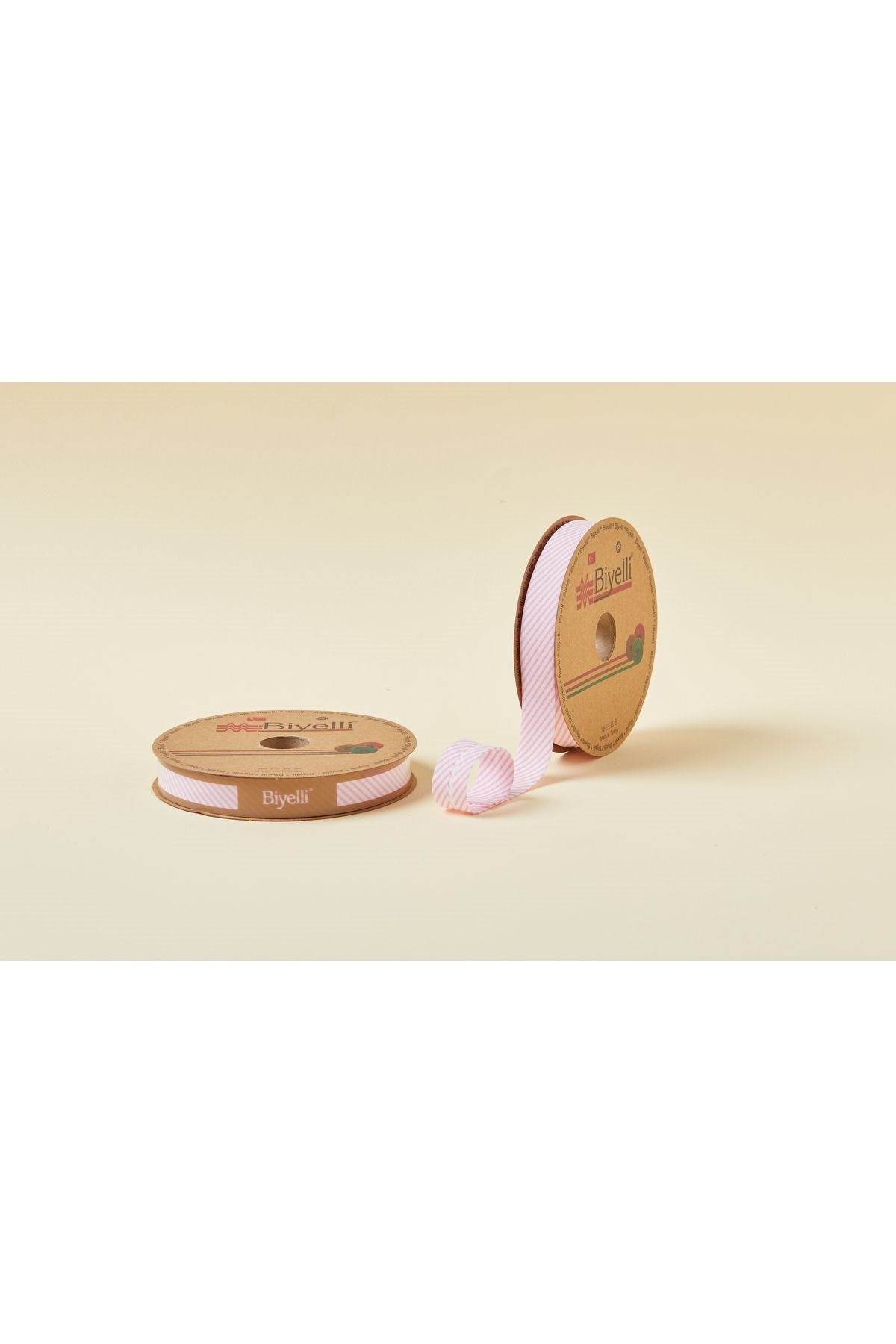 Косая полоска, сложенная, C02, розовая, 2 см, 25 метров, 65% хлопок, 35% полиэстер