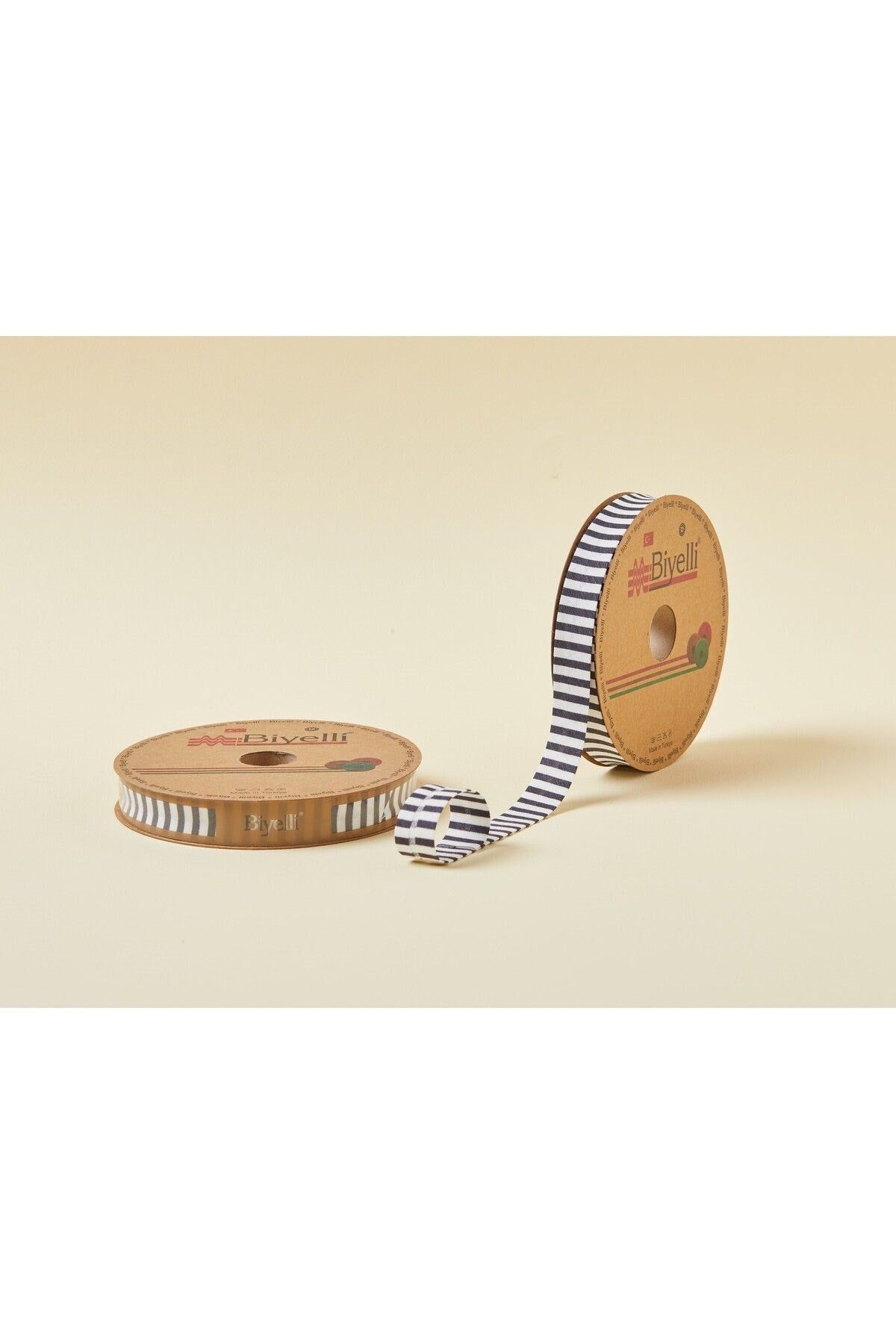 Плотная полосатая фальцевая окантовка F11, черная, 2 см, 25 метров, 65% хлопок, 35% полиэстер