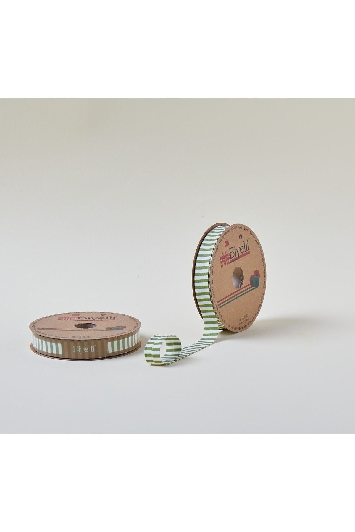 Плотная полосатая фальцевая окантовка F12 зеленая 2 см 25 метров 65% хлопок 35% полиэстер
