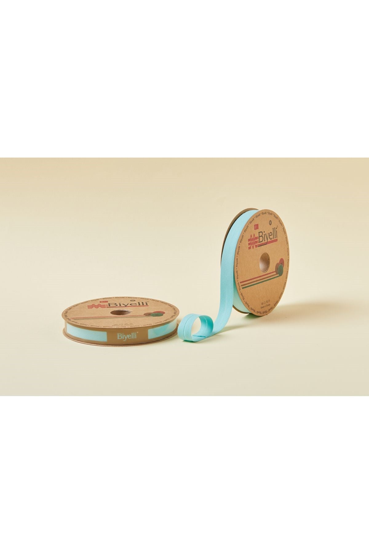 Хлопковая сложенная косая бейка D20 светло-мятного цвета, 2 см, 25 метров, 65% хлопок, 35% полиэстер
