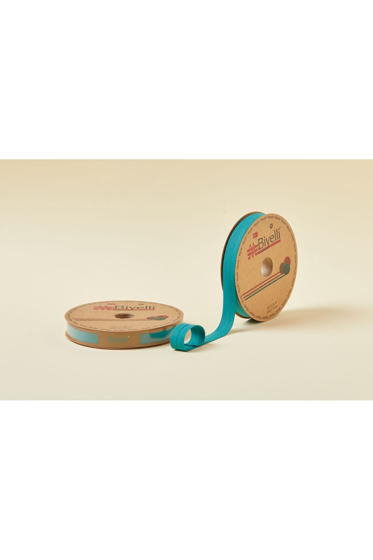 Хлопковая сложенная косая бейка D40 изумрудно-зелёного цвета, 2 см, 25 метров, 65% хлопок, 35% полиэстер