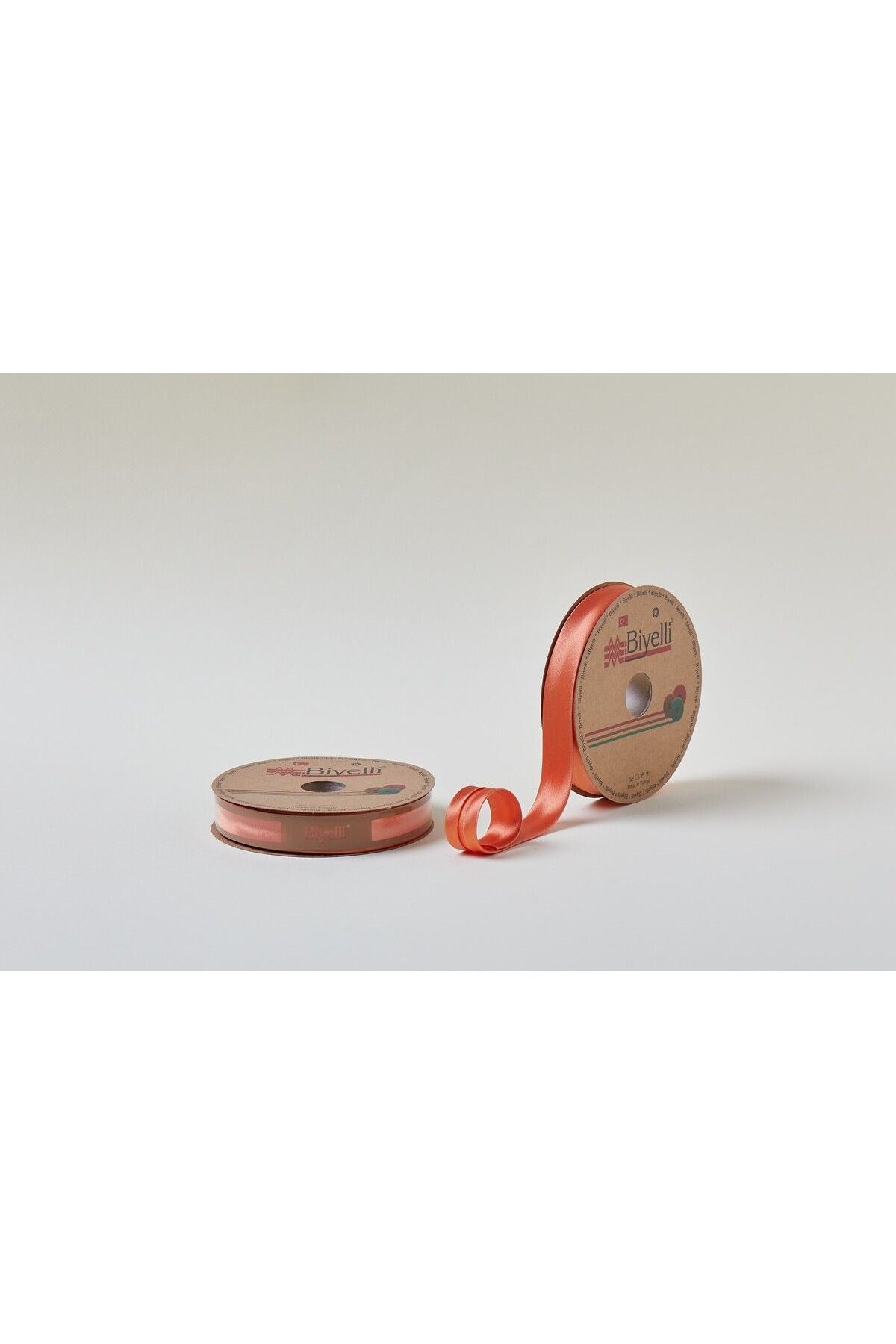Атласная косая бейка 028, цвет оранжевый, 2 см, 25 метров, 100% полиэстер