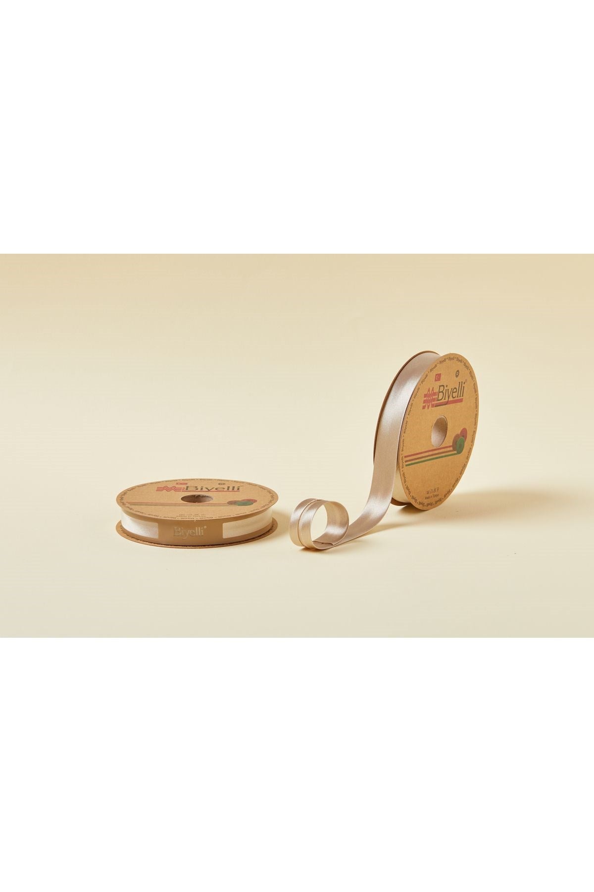 Атласная косая бейка, сложенная пополам, 030 Stone, 2 см, 25 метров, 100% полиэстер