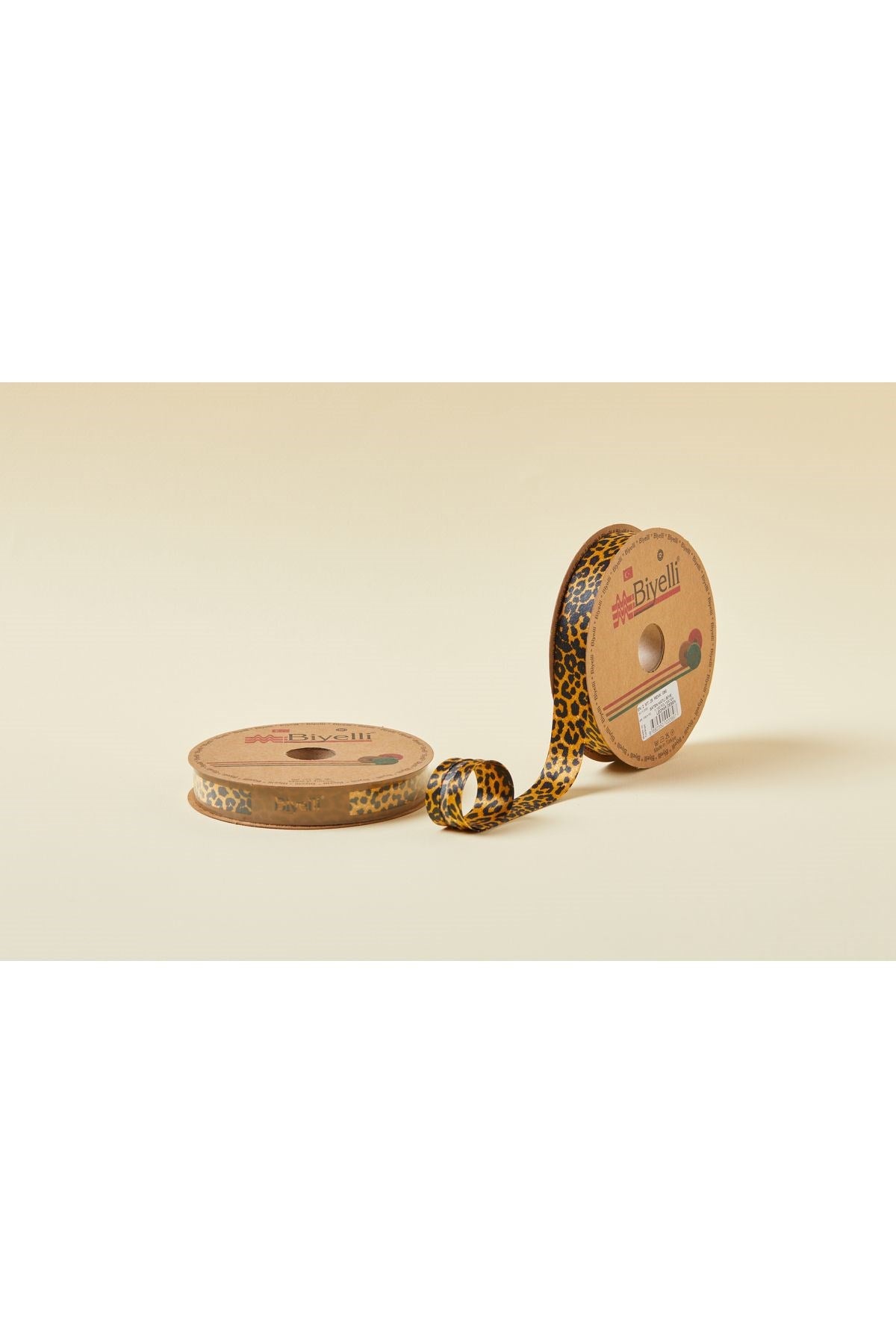 Атласная косая бейка 090, леопард, 2 см, 25 метров, 100% полиэстер