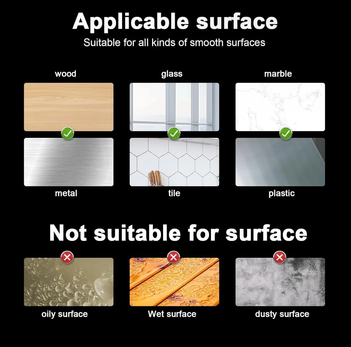 - Многоцелевое использование: нанопаста подходит для гладких поверхностей, таких как стекло, дерево, плитка, пластик, мрамор, металл и многих других предметов, используется для демонстрации ваших картин, постеров, фотографий, заметок, произведений искусства, инсталляций, оформления вечеринок и т. д.