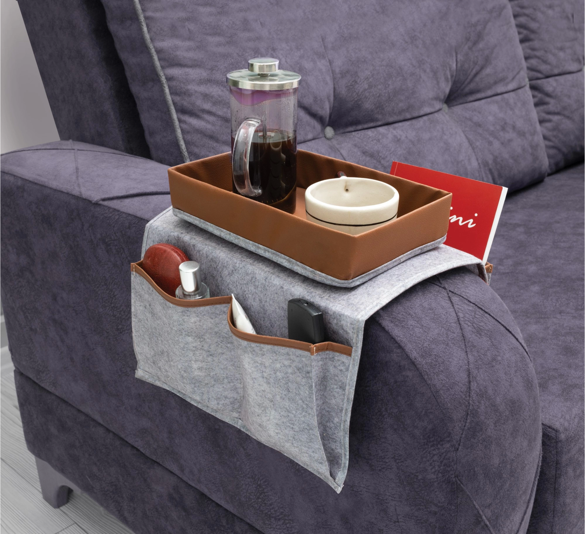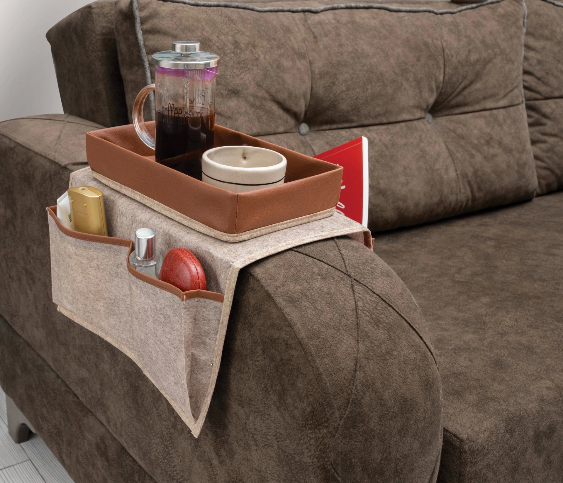 Многоцелевой кожаный полосатый карманный органайзер для дивана 03938