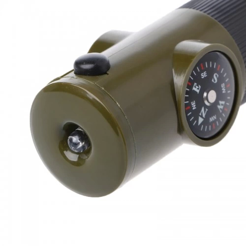 Набор свистков для выживания 7 в 1: свисток, лупа, сигнальное зеркало, компас, термометр, небольшой контейнер (в который можно положить некоторые мелкие предметы) и белый светодиодный фонарь
