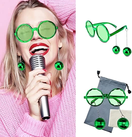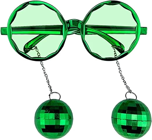 Очки для диско-вечеринки с серьгами-шариками зеленого цвета