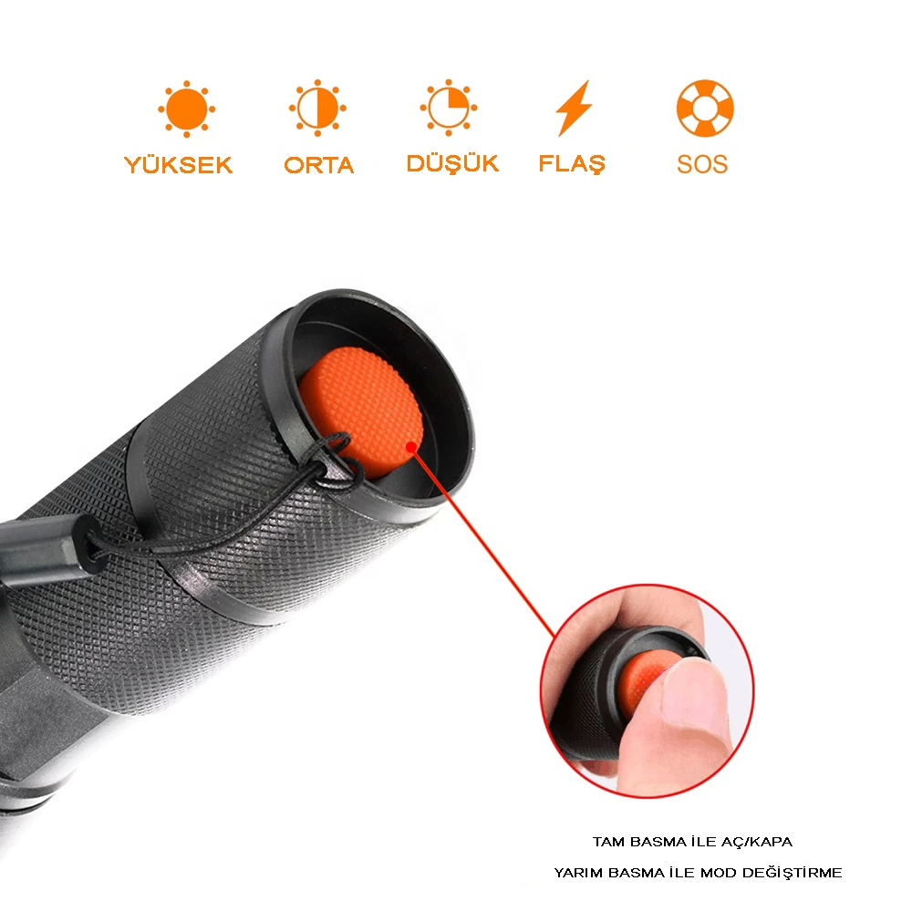 Помимо четырёх различных режимов освещения, WT-023 также предлагает два других режима освещения. Просто нажмите кнопку переключения, чтобы получить доступ к этим режимам, доступным в двух вариантах: SOS и Стробоскоп. Этот перезаряжаемый фонарик с зумом и дальностью действия 2 км быстро удовлетворит все ваши потребности в освещении и обеспечит превосходные результаты. Его потрясающий дизайн сразу же привлечёт ваше внимание, и понятно, почему вы захотите приобрести его прямо сейчас. Этот очень доступный продукт отличается исключительной производительностью и предлагает ещё больше преимуществ за свои деньги.