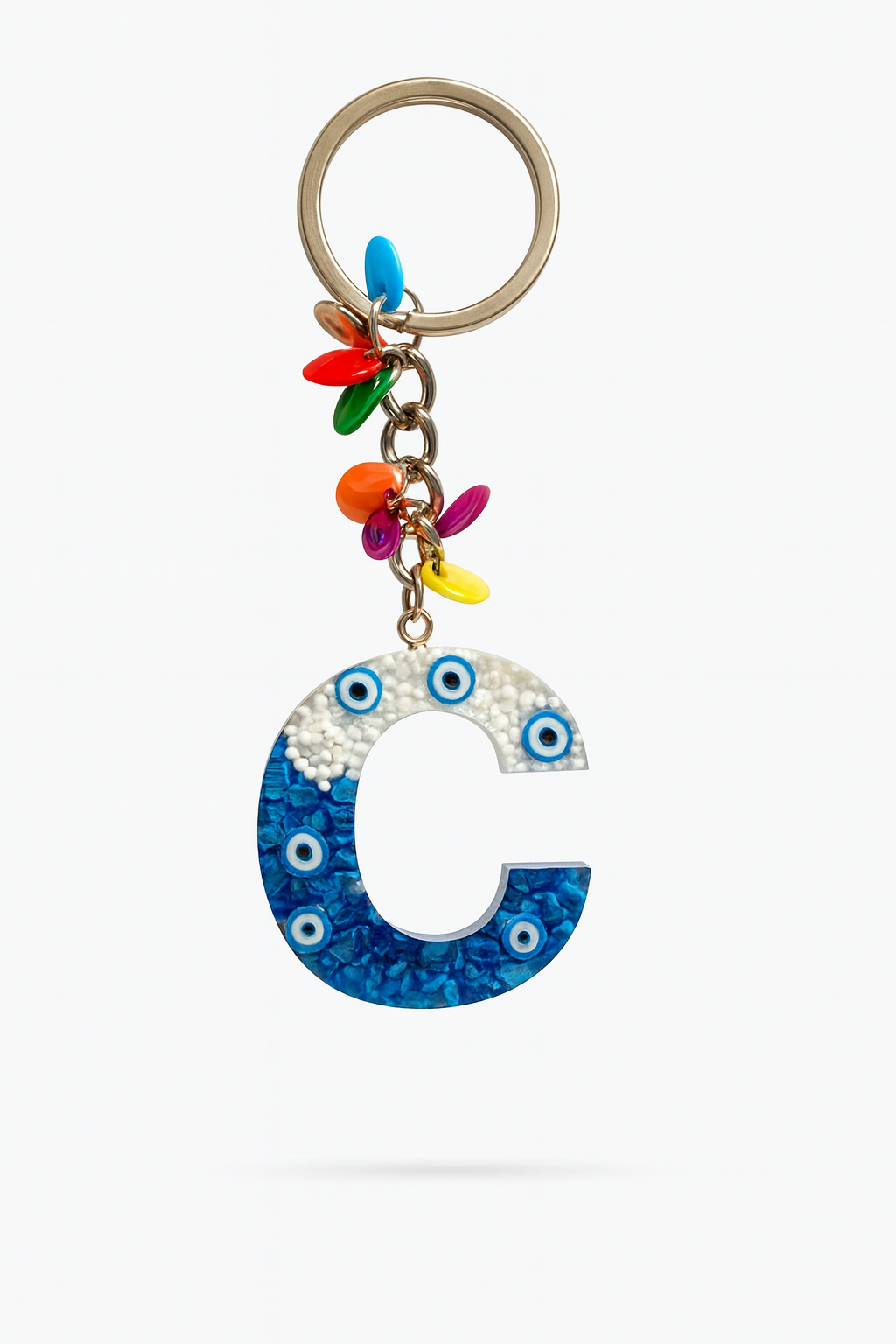 Брелок с буквой из эпоксидной смолы – буква C, бусина от сглаза и красочный амулет