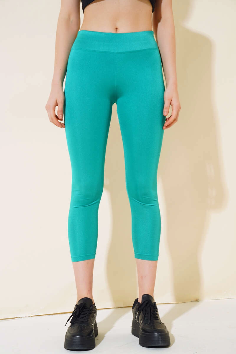 Эластичные блестящие зеленые леггинсы в стиле диско с высокой талией