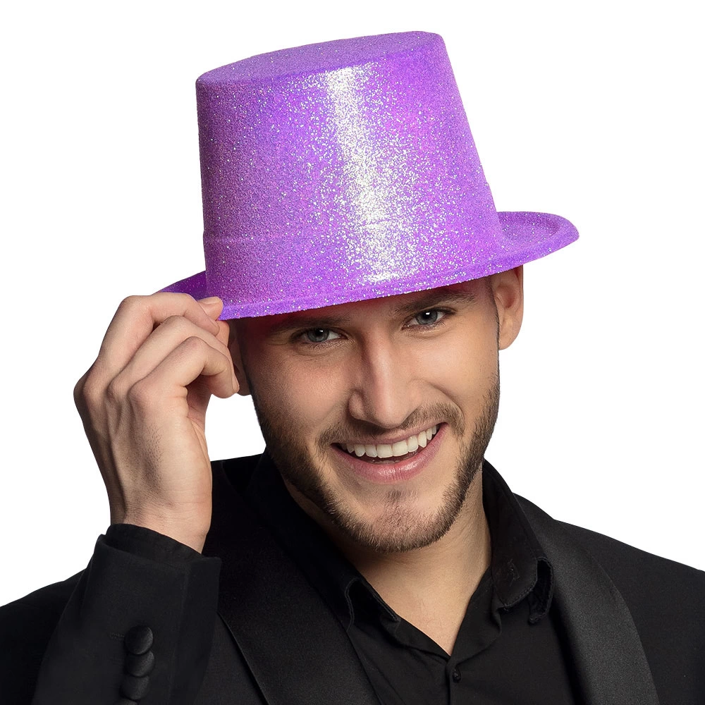 Высокая фетровая шляпа-котелок с блестками флуоресцентного фиолетового цвета с: