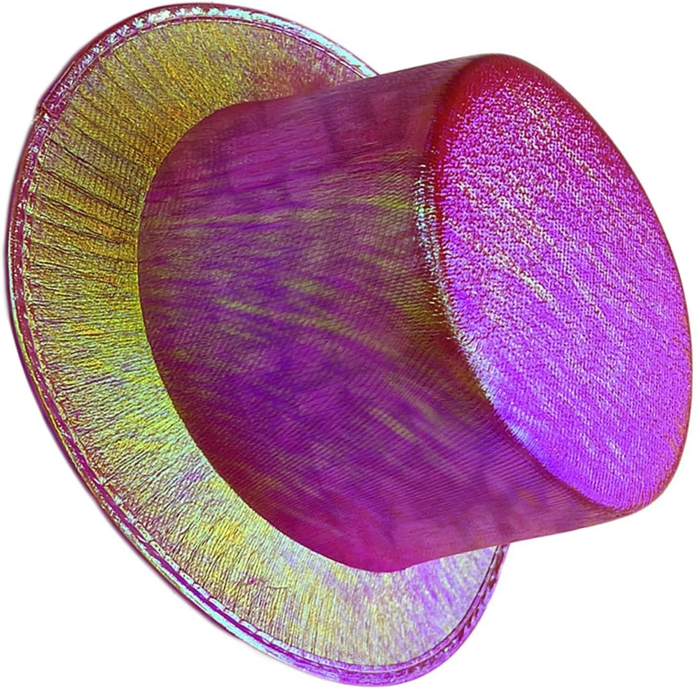 Фетровый цилиндр цвета фуксии с блестящей голографической тканью (взрослый размер) — идеальный аксессуар для вечеринок, фестивалей и других торжественных случаев. Он подходит для окружности головы 58 см и покрыт блестящей зелёной голографической тканью.