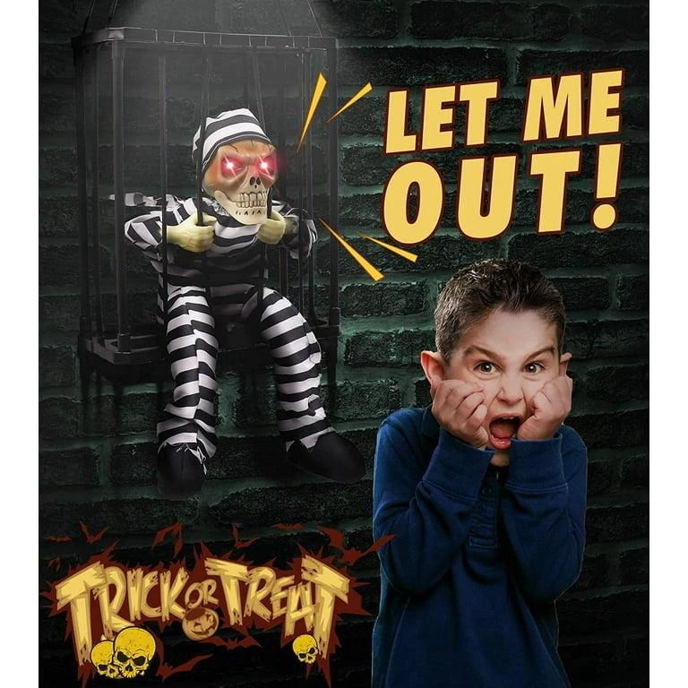 Анимированное звуковое сенсорное украшение в виде черепа-скелета, похожего на заключенного