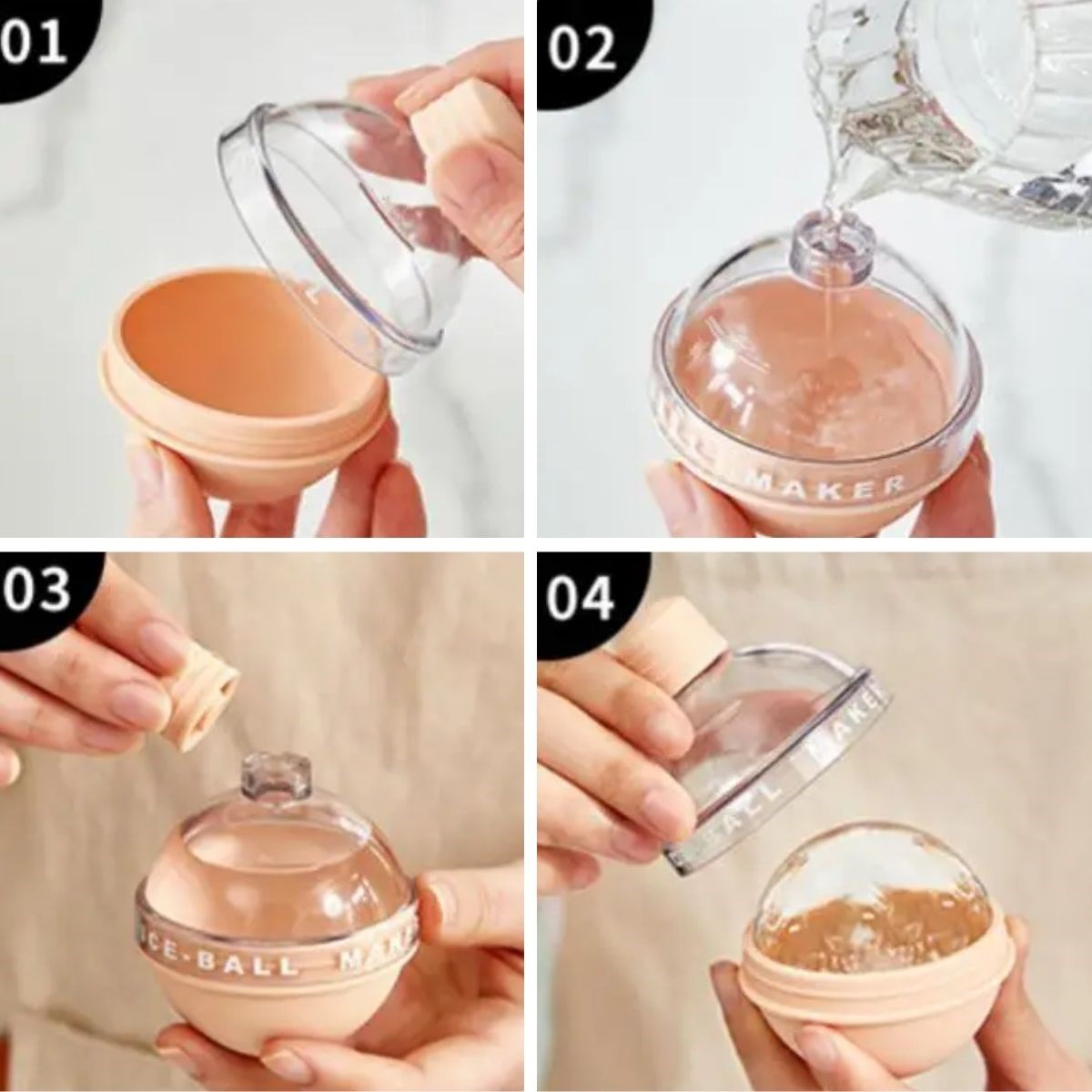 ✅ Форма большой сферы: позволяет получить 4 большие ледяные сферы, каждая примерно 4,5 см в диаметре.