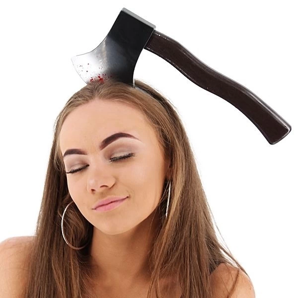 Хэллоуин: кровавый топор, насаженный на голову, шутка-корона