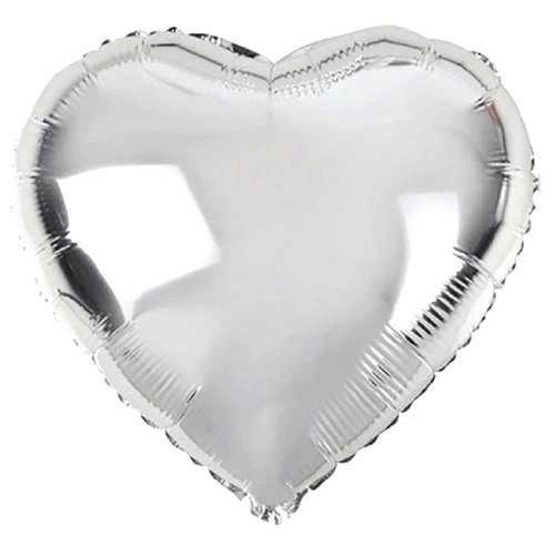 Шары из фольги серебристого цвета в форме сердца, 45 см, 10 штук
