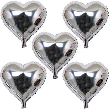 Воздушные шары из фольги серебристого цвета в форме сердца, 45 см, 5 штук (4620)
