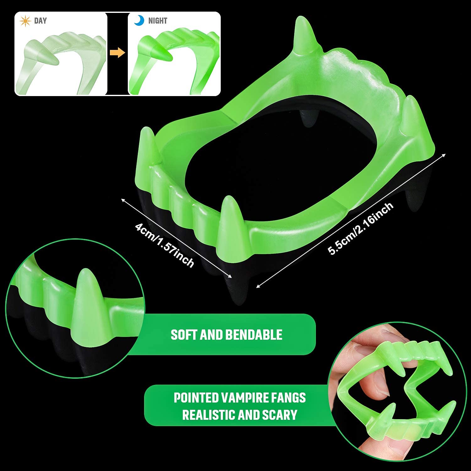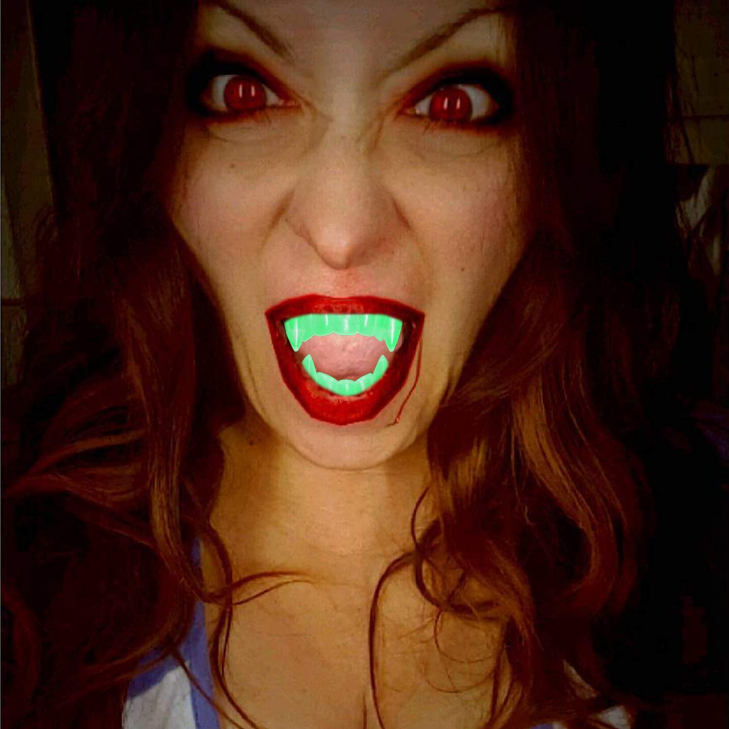 Фосфоресцентные зубы вампира с двойным нёбом, светящиеся в темноте (4620)