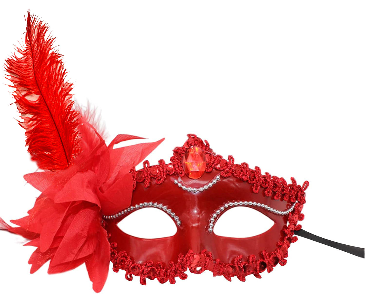 Маска изготовлена из прочных, высококачественных материалов, обеспечивающих длительный срок службы. Перья и розы надёжно закреплены, поэтому риск их осыпания или деформации минимален даже при длительном использовании.