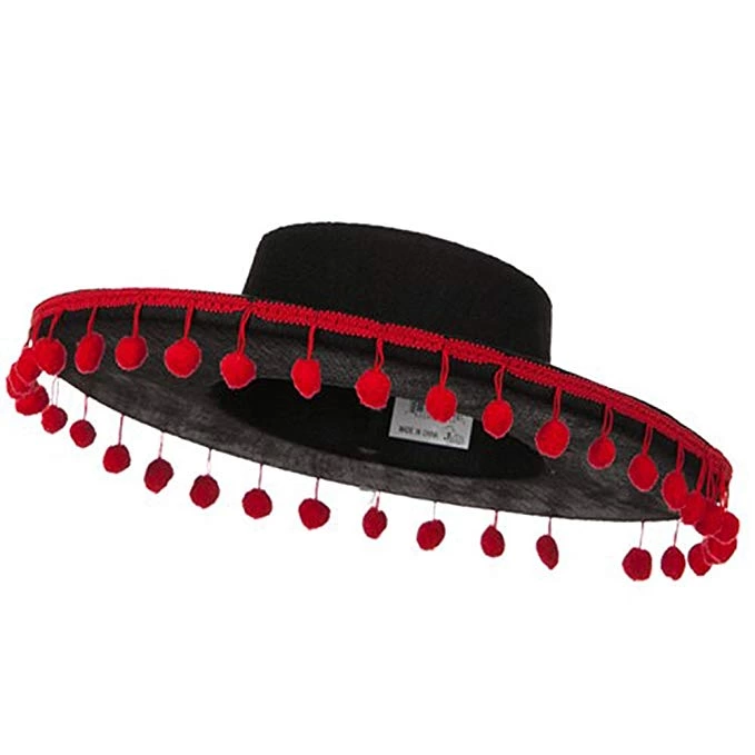 Черная детская испанская шапочка с красным помпоном