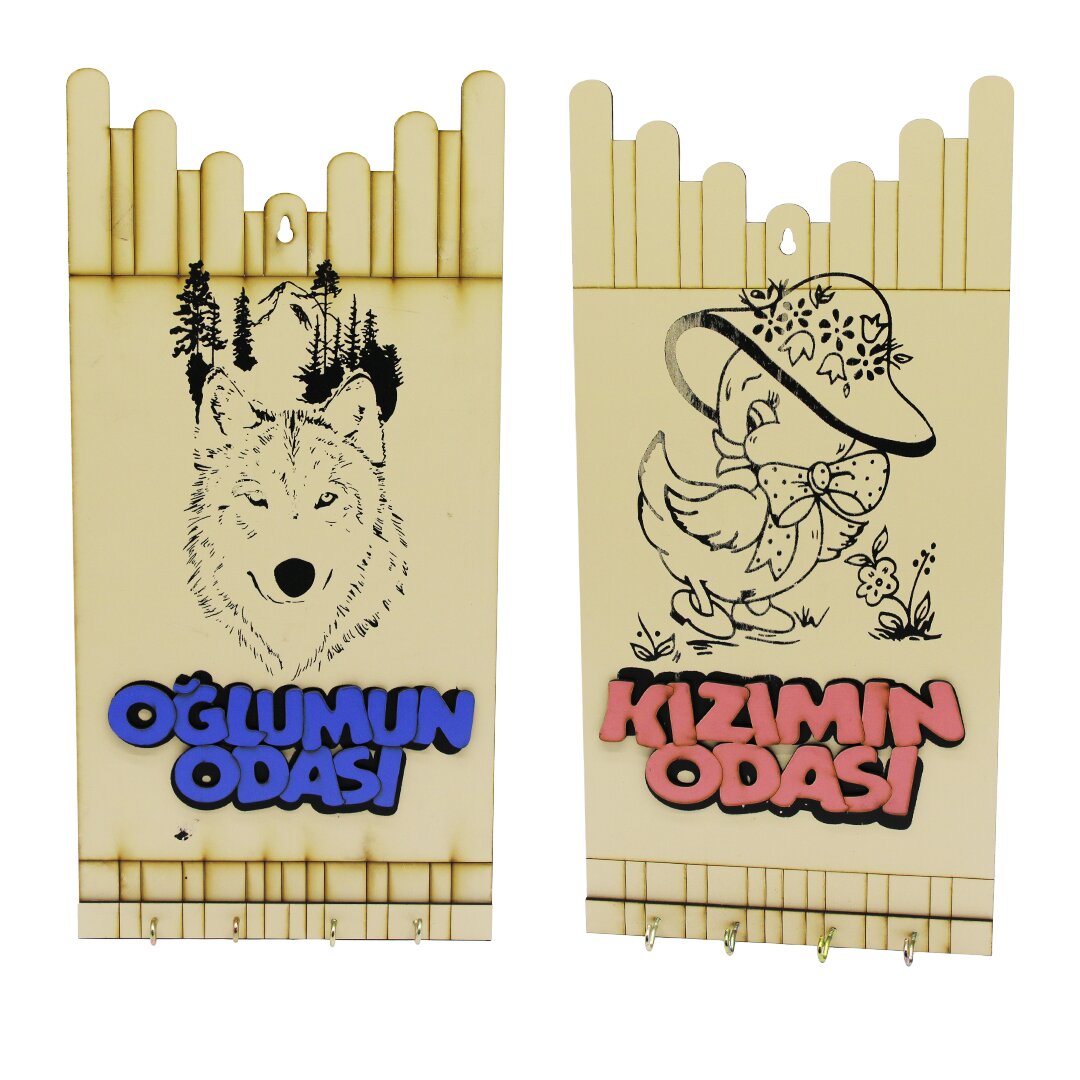 ДЕРЕВЯННЫЙ БРЕЛОК С ФИГУРКАМИ ДЕВОЧКИ И МАЛЬЧИКА (НАДПИСЬ В КОМНАТЕ МОЕГО СЫНА И ДОЧЕРИ)