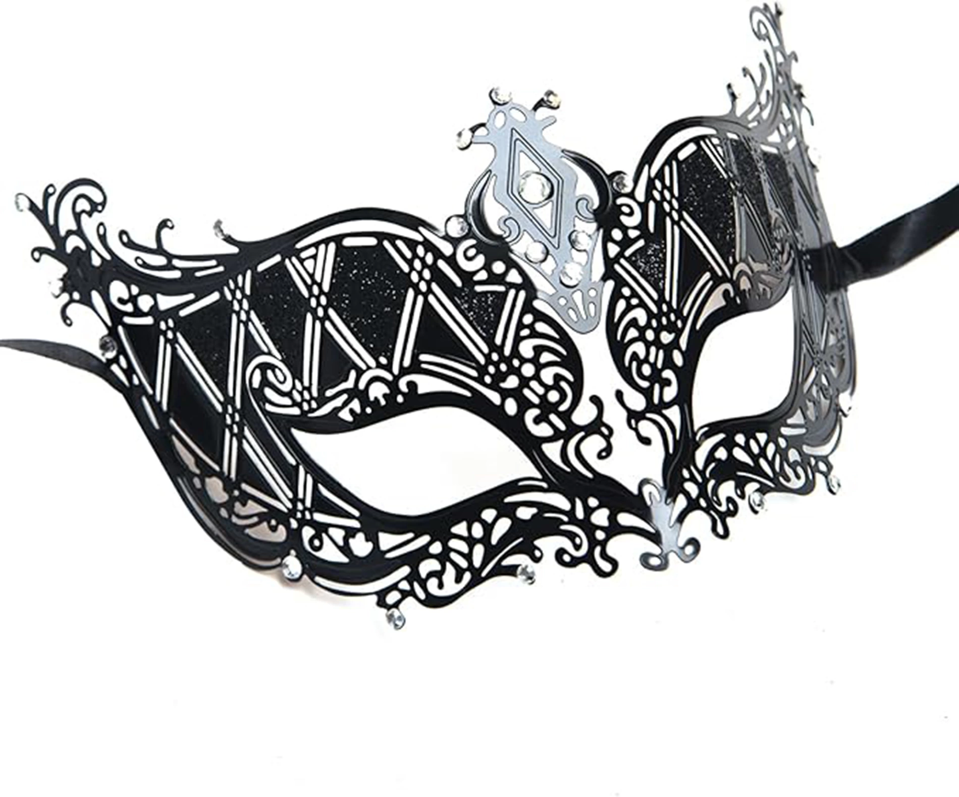 Оставьте свой след в ночи с помощью черной металлической маски класса люкс с кристаллами серебристого цвета