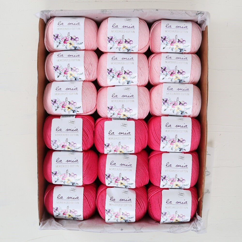 9 шт. пряжи для ручного вязания La Mia из мерсеризованного хлопка тёмно-розового цвета - 35