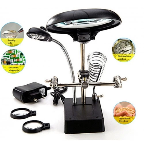Кратность лупы можно менять. Светодиодная подсветка обеспечивает комфортную работу. Электросварка, моделирование, коллекционирование марок, вышивка, антиквариат, биологические наблюдения, чтение и т.д.