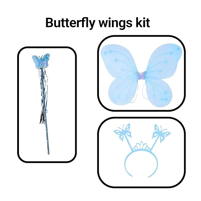 Чтобы воплотить в реальность мечту вашего малыша стать бабочкой, вам понадобится набор палочек-коронок «Крылышки бабочки» синего цвета длиной 50 см. С этим набором ваша маленькая принцесса превратится в сказочную бабочку и расширит границы своего воображения.