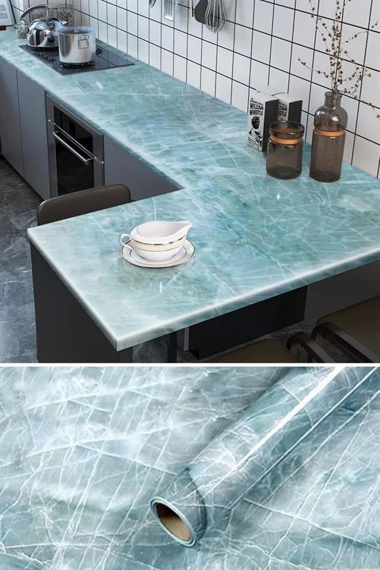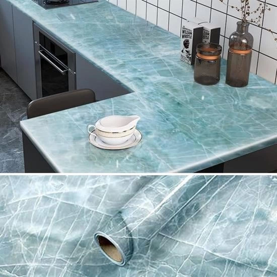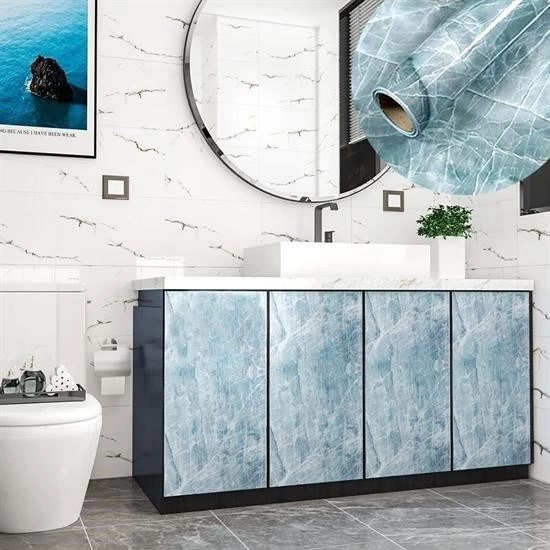 Водостойкая самоклеящаяся фольга для кухонной столешницы с мраморным узором, синяя, 5x0,6 м