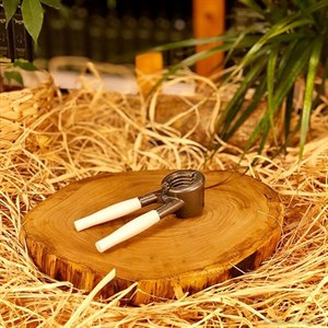 Металлический орехокол с белой ручкой