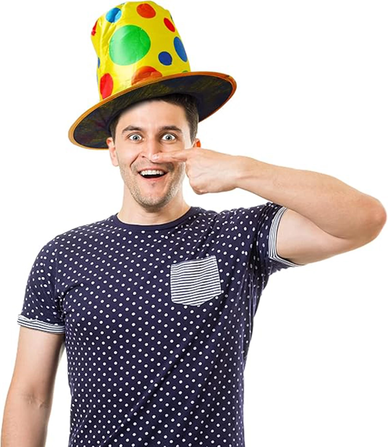 Яркая клоунская шляпа в горошек — незаменимый аксессуар для праздничных мероприятий и весёлых костюмов. Её узор в горошек добавит яркости любому наряду, а компактный размер делает её удобной в использовании. Если вы хотите создать праздничную атмосферу, эта шляпа идеально вам подойдёт.