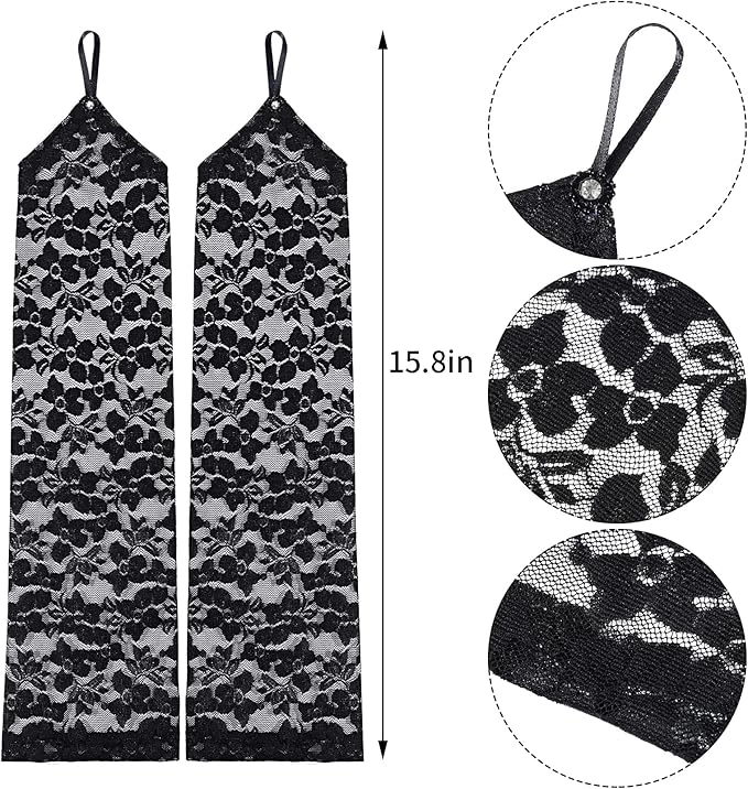 Ищете стильный аксессуар для особого случая, вечеринки или вечернего платья? Эти элегантные кружевные перчатки с ремешками для пальцев добавят женственности благодаря цветочному узору. Эта модель длиной 40 см изящно обхватывает руку, создавая потрясающий образ. Элегантность чёрного кружева и его тонкая работа поражают воображение, а дизайн с ремешками для пальцев обеспечивает комфорт и элегантность.