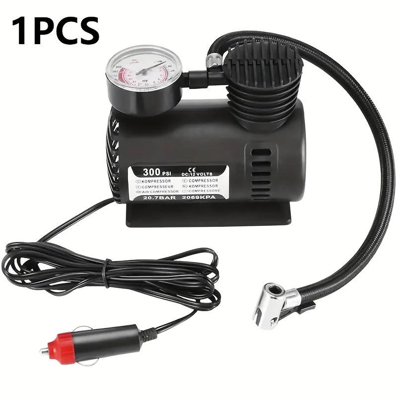 Черный мини-компрессор с пластиковым корпусом — идеальный помощник для вашего автомобиля.